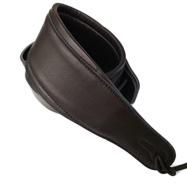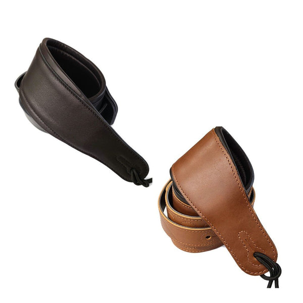This quality leather guitar/bass strap with a synthetic leather pad is comfortable and extra wide (3inches).